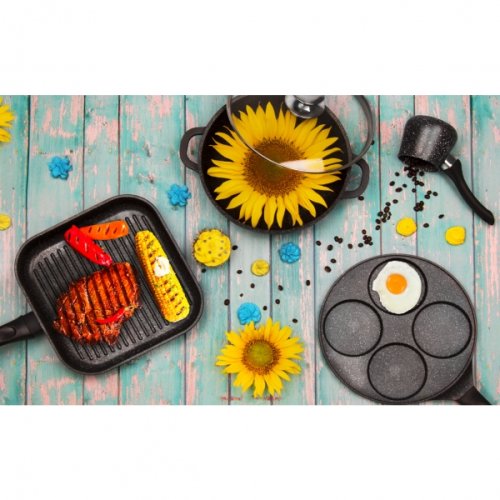 Spojenie jednoduchého, ale účelného dizajnu s kvalitou nepriľnavého povrchu robí z tejto grilovacej panvice perfektného pomocníka pri príprave šťavnatých steakov, rýb, zeleniny alebo napríklad flambovaného ananásu.