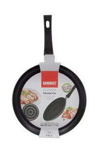 Hliníková panvica na palacinky CULINARIA s nepriľnavým 2-vrstvovým povrchom XYLAN a čiernou bakelitovou nitovanou rukoväťou. Ľahká panvica na použitie na všetky typy varných dosiek mimo indukcie.