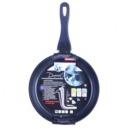 Panvica DIAMANT priemer 24 cm, výška 5 cm, hrúbka steny 3 mm. Hmotnosť 0.85 kg. Nepriľnavý povrch je spevnený diamantovými kryštálmi. Tieto diamantové častice sú obsiahnuté vo vnútornej vrstve a vynikajú svojou tepelnou vodivosťou. Použitím revolučnej výrobnej technológie a zvolenými materiálmi nedochádza k uvoľňovaniu nebezpečných látok (PFOA FREE). Znižujú sa tak škodlivé dopady na zdravie aj životné prostredie. Dokonalá vodivosť eliminuje stratu tepelnej energie. Panvicu je možné používať na všetky typy spotrebičov. Je vhodná aj do umývačky riadu. EAN 8592381082161
