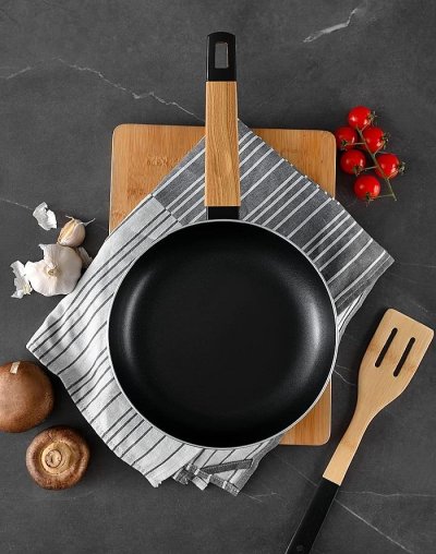 • Rozmery: 28 x 6,4 cm • Panvica je vyrobená z lisovaného hliníka, odolného a 100% recyklovateľného materiálu, ktorý ponúka vynikajúcu tepelnú vodivosť. • Vnútro panvice má nepriľnavú povrchovú úpravu, ktorá uľahčuje varenie a zabraňuje prichyteniu pokrmu lepí a uľahčuje čistenie po použitie. •Dno panvice ponúka rýchly nárast teploty a rovnomerné rozloženie tepla. Táto základňa je kompatibilná so všetkými sporákmi vrátane indukcie. • Rukoväť panvice je vybavená technológiou Soft Touch a ponúka príjemnú povrchovú úpravu na dotyk pre pohodlnejšie a bezpečnejšie uchopenie pána. Panvica 28 cm z kolekcie Bergner´s Earth Black je vyrobená z lisovaného hliníka, ktorý rýchlo distribuuje teplo, a prémiový nepriľnavý povlak ILAG je veľmi odolný vďaka dobrej odolnosti proti poškriabaniu a oderu, vhodný na každodenné použitie. Vzhľadom na zloženie materiálu je pri smažení na tejto panvici bez PFOA, olova alebo kadmia nutné použiť iba malé množstvo tuku, perfektné pre zdravé varenie. Ergonomická mäkká na dotyk, tepelne odolná drevená rukoväť, ktorá zabraňuje požiaru. Základňa s indukčným bodom je vhodná pre všetky sporáky ako je indukčný, plynový, sklokeramický, halogénový a elektrický. Ľahko sa čistí, na povrchu sa nelepia potraviny a na predĺženie životnosti výrobku sa odporúča čistiť ručne.