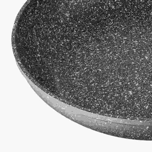 •Rozmery: 28 x 5,2 cm • Vyrobené z prémiového kovaného hliníka pre lepšiu odolnosť proti korózii a opotrebovaniu. •Vnútro panvice má nepriľnavú povrchovú úpravu z mramoru, ktorá zabraňuje prichyteniu jedla a zlepšuje varenie. • Panvica má indukčné dno, ktoré rovnomerne rozvádza teplo po celom povrchu. Táto základňa je kompatibilná so všetkými varnými doskami na trhu, vrátane indukčných • Šedá rukoväť s povrchovou úpravou Soft Touch a chrómovou vložkou. • Možno umývať v umývačke. Panvica s priemerom 28 cm je vyrobená z odolného kovaného hliníka pre rýchle a rovnomerné rozloženie tepla riadu bez horúcich miest, je odolná a ušetrí vám veľa energie. Nepriľnavý povlak Marble + dosahuje rovnomernejší a trvalejší uvoľňovací efekt a je extrémne odolný proti poškriabaniu, jedlo sa lepí a ľahko sa čistí. Základňa s bodovou indukciou je vhodná pre všetky varné dosky ako indukčné, plynové, sklokeramické, halogénové a elektrické. Šedé prevedenie s bielymi bodkami a ergonomická rukoväť s hadím vzorom s mäkkým dotykom zlepšia vaše kuchárske zručnosti. Na predĺženie životnosti produktu sa odporúča ručné čistenie. Ideálne pre všetkých kuchárov, od začiatočníkov po skúsených kuchárov!
