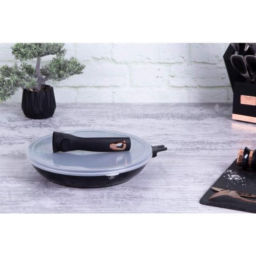 Univerzálna stredne veľká panvica s odnímateľnou rukoväťou v atraktívnom dizajne Black Rose Collection. Panvica je potiahnutá 3-vrstvovým titánovým povrchom, ktorý je charakteristický svojou dokonalou nepriľnavosťou, pripravované potraviny sa nepripaľujú a vďaka tomu sa panvica veľmi jednoducho čistí. Zároveň je vhodný na zdravé varenie s minimom tuku alebo oleja, v závislosti na použitých surovinách pokojne aj bez jedinej kvapky tuku. Jedným stlačením tlačidla je možné odnímateľnú rukoväť z panvice zložiť a tú potom vložiť na dopekanie alebo rovno na pečenie do rúry. Nasadenie a odobratie rukoväte zvládnete jednoducho jednou rukou. Iste to oceníte aj pri skladovaní alebo údržbe. K panvici je navyše praktické viečko, ktorým sa dá uzavrieť. <BR><BR>- vnútorná aj vonkajšia vrstva neobsahujú žiadne škodliviny, výsledné pokrmy tak nestrácajú varením svoje vitamíny <BR>- jadro panvice z kovaného hliníka vyniká vysokou stabilitou a perfektnou tepelnou vodivosťou, takže sa nielen rýchlo a rovnomerne zahreje po celom povrchu, veľmi ľahko tiež teplotu pri varení udržuje <BR>- zosilnené nerezové Turbo indukčné dno pre maximálnu efektivitu prípravy pokrmu <BR>- ergonomicky tvarovaná rukoväť má protišmykovú mäkčenú úpravu, vďaka ktorej skvele padne do ruky, dobre sa s ňou manipuluje a umožní pevný a bezpečný úchop <BR>- vďaka izolačným prvkom zostáva rukoväť po celú dobu varenia chladná a nepáli <BR>- telo panvy je zakončené zosilneným okrajom pre lepšia odolnosť voči nárazom <BR>- vhodná na všetky druhy sporákov aj na indukciu <BR>- plne odnímateľná rukoväť umožňuje použitie v rúre až do teploty 220 ° C <BR>- súčasťou balenia je zároveň plastová pokrievka pre praktickejšie a komfortnejšie užívanie <BR> >- vďaka nadštandardným nepriľnavým vlastnostiam mramorového povrchu, je čistenie rýchle a nenáročné, stačí umyť teplou vodou a hubkou <BR>- možno umývať aj v umývačke riadu <BR>- ideálny pre každodenné varenie, dusenie, vyprážanie a zapekanie akýchkoľvek pokrmov <BR>- ECOfriendly, použité materiály neobsahujú žiadne škodliviny ako Pfoa, olovo ani kadmium <BR>- vysoko atraktívny moderný dizajn s jedinečnou metalickou vonkajšou farbou <BR>- panvica je vďaka svojmu perfektnému vzhľadu vhodná aj pre priame servírovanie pokrmov na stôl <BR><BR>- rozmery: priemer horného okraja 28 x výška 4,8 cm <BR>- objem: 1,7 litra <BR>- rúra: 220°C (bez rukoväte) <BR> - indukcia: áno <BR>- sklokeramika: áno <BR>- plyn: áno <BR>- elektrina: áno <BR>- pokrievka: plastové veko (nie je vhodné do rúry) <BR>- farba: čierna metalická <BR>- kolekcia: Black Rose Collection