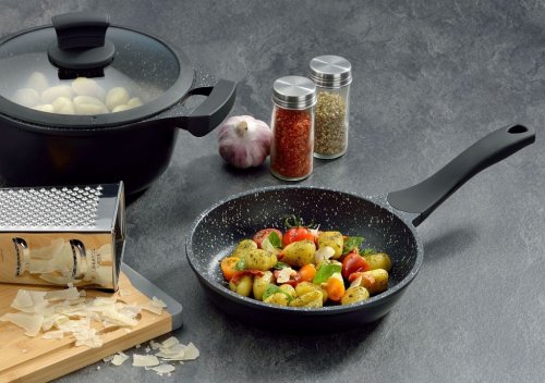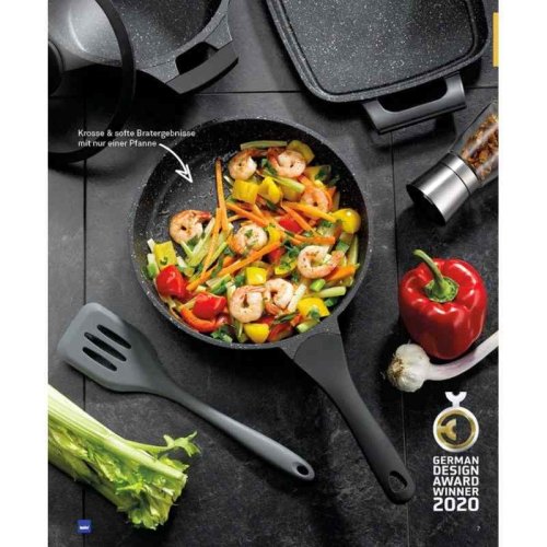 • špeciálne vyvinutý antiadhézny povrch StellaNova© s vlastnosťou Oil Control System - tento 3-vrstvový nepriľnavý povrch je charakteristický svojou hrubou štruktúrou, vďaka ktorej sa tuk aj šťavy z pokrmu nerozlievajú iba k okrajom panvice, ale rovnomerne sa distribuujú po celej ploche panvice a zároveň pod pokrm, výsledkom sú tak dokonale šťavnaté a chrumkavé jedlá s výraznou chuťou - zároveň je vhodný pre zdravé varenie s minimom tuku, v závislosti na použitých surovinách pokojne aj úplne bez tuku - vysoko odolné proti poškriabaniu - silné perfektne rovné celonerezové dno pre maximálnu efektivitu varenia alebo vyprážania - energeticky úsporné varenie zaisťuje kvalitný robustný korpus z liateho hliníka, ktorý sa rýchlo nahrieva a má vynikajúcu tepelnú vodivosť - ergonomicky tvarovaná rukoväť s dokonalým prechodom bez viditeľných skrutiek alebo iných spojov - rukoväť má protišmykovú mäkčenú úpravu, vďaka ktorej príjemne padne do ruky a pri varení zostáva chladná a nepáli - panvička je vhodná na všetky druhy sporákov aj na indukciu - vhodná aj na zapekanie v rúre do maximálnej teploty 180 ° C - vďaka vysoko nepriľnavému povrchu je čistenie rýchle a nenáročné, stačí umyť teplou vodou a hubkou - ideálny pre každodenné varenie či vyprážanie akýchkoľvek pokrmov, rovnako ako pre nevšedné príležitosti, ktorou môže byť príprava chrumkavého steaku alebo čerstvej ryby - priemer horného okraja: 20 cm - výška: 5 cm - precízne spracovanie a vysokú kvalitu potvrdzuje PREDĹŽENÁ ZÁRUKA 5 ROKOV! - zisk prestížneho ocenenia GERMAN DESIGN AWARD 2020 - značka: KELA<BR><BR><SPAN lang=SK><P dir=ltr align=left><STRONG>Fascinujúce výsledky varenia a vyprážania s intenzívnou chuťou.</STRONG>< /P><P dir=ltr align=left>Pri príprave svojich obľúbených pokrmov s hrncami a panvicami Stella Nova úplne jednoducho skombinujete prednosti dvoch špeciálnych panvíc. Vždy v závislosti od priania a od receptu je možné vyprážať na jednej a tej istej panvici chrumkavé alebo vláčne pokrmy. Po osmažení pri vysokej teplote pokrm získa chrumkavú a chutnú krustu, ale napriek tomu je možné ho ľahko uvoľniť od povrchu s nepriľnavou úpravou. To umožňuje niekoľko tisíc mikro priehlbín v štruktúre (systém Oil- Control). Pri smažení alebo dusení pri nižších teplotách bude jedlo jemnejšie, ale bude mať rovnako intenzívnu chuť. V každom prípade budete potrebovať len malé množstvo tuku alebo oleja, pretože sa pod pokrmom rozleje úplne rovnomerne. Prichytenie alebo dokonca pripečenie patrí minulosti a čistenie je úplne jednoduché.</P> <FONT color=#1f3763><P dir=ltr !</P></FONT></STRONG><P dir=ltr align=left>Množstvo riadu na varenie Stella Nova bolo roku 2020 vyznamenané cenou VÍŤAZY Nemeckej rady pre dizajn (Rat für Formgebung) v kategórii Excellent Product Design, a to za dizajn a vynikajúce vlastnosti. Na nasledujúcej strane nájdete všetky vlastnosti nového radu riadu na varenie a hneď si môžete vyskúšať nejaký nový recept! Oceňovaný rad riadu na varenie s novou povrchovou štruktúrou.</P></B></FONT><P dir=ltr align=left>Špeciálne vyvinutá, inovatívna štruktúra povrchu s malými priehlbinami v povrchu garantuje výsledky smaženia s intenzívnou chuťou.</P><B>< P dir=ltr align=left>Vlastnosti</B><BR>Použitím riadu na varenie a vyprážanie s antiadhezívnym povrchom docielite optimálne výsledky a vykúzlite v ňom zaručene svoje najlepšie pokrmy. Príprava jedál bez použitia tuku zodpovedá duchu zdravého stravovania. Pridaním už nepatrného množstva tuku sa nič nepripáli ani neprichytí. Špeciálne vyvinutý povrch garantuje vynikajúce antiadhezívne vlastnosti, vďaka ktorým uvaríte a usmažíte s malým množstvom tuku a riadu umyjete obzvlášť ľahko a jednoducho.<BR><BR><B>Prednosti</B><BR>• dlhá životnosť<BR>• ľahká údržba vďaka antiadhezívnym vlastnostiam<BR>• šetrné vyprážanie a varenie bez použitia tukov<BR>• vhodné pre všetky typy sporákov – aj na indukciu<BR>• 5-ročná záruka<BR> <BR><B>Ergonomická rukoväť</B> – nie sú viditeľné žiadne skrutky.<B><B>Celoplošné dno z ušľachtilej ocele vhodné aj na indukciu</B> na rýchle ohrievanie a úsporu energie.</P><P dir=ltr align=left></P><STRONG ><P>SYSTÉM OIL CONTROL</STRONG><BR>Štruktúra povrchu s mikropriehlbinami v spojení s robustným nepriľnavým povrchom pre chrumkavé aj vláčne výsledky vyprážania.<BR><STRONG>Ergonomická bakelitová rukoväť soft touch</STRONG> pre príjemnú a bezpečnú manipuláciu.<BR><STRONG>Silnostenná hliníková liatina</STRONG> pre optimálny rozvod tepla.<BR><STRONG>Sklenená pokrievka</STRONG> <STRONG>so silikónovým okrajom</STRONG> pre optimálny priehľad a prehľad.<BR ><STRONG>Jednoduché čistenie</STRONG> – odporúčame ručné čistenie.<BR></P></SPAN><BR><BR> <IFRAME title="YouTube video player" height=315 src="https:/ /www.youtube.com/embed/V6o9AZIGuDs" frameBorder=0 width=560 allowfullscreen allow="accelerometer; autoplay; clipboard-write; encrypted-media; gyroscope; picture-in-picture"></IFRAME>