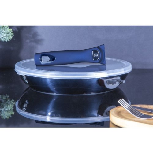 Univerzálna veľká panvica s nepriľnavým povrchom s mramorovým dizajnom a odnímateľnou rukoväťou v atraktívnom dizajne Burgundy Metallic. Panvica je potiahnutá 3vrstvovým mramorovým povrchom, ktorý je charakteristický svojou dokonalou nepriľnavosťou, pripravované potraviny sa nepripaľujú a vďaka tomu sa panvica veľmi jednoducho čistí. Zároveň je vhodný na zdravé varenie s minimom tuku alebo oleja, v závislosti na použitých surovinách pokojne aj bez jedinej kvapky tuku. Jedným stlačením tlačidla je možné odnímateľnú rukoväť z panvice zložiť a tú potom vložiť na dopekanie alebo rovno na pečenie do rúry. Nasadenie a odobratie rukoväte zvládnete jednoducho jednou rukou. Iste to oceníte aj pri skladovaní alebo údržbe. K panvici je navyše praktické viečko, ktorým sa dá uzavrieť.