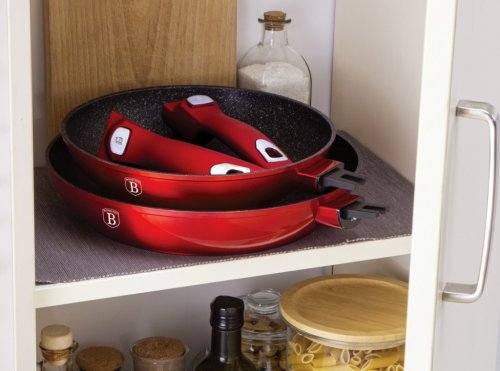 Univerzálna stredne veľká panvica s nepriľnavým povrchom s mramorovým dizajnom a odnímateľnou rukoväťou v atraktívnom dizajne Burgundy Metallic. Panvica je potiahnutá 3vrstvovým mramorovým povrchom, ktorý je charakteristický svojou dokonalou nepriľnavosťou, pripravované potraviny sa nepripaľujú a vďaka tomu sa panvica veľmi jednoducho čistí. Zároveň je vhodný na zdravé varenie s minimom tuku alebo oleja, v závislosti na použitých surovinách pokojne aj bez jedinej kvapky tuku. Jedným stlačením tlačidla je možné odnímateľnú rukoväť z panvice zložiť a tú potom vložiť na dopekanie alebo rovno na pečenie do rúry. Nasadenie a odobratie rukoväte zvládnete jednoducho jednou rukou. Iste to oceníte aj pri skladovaní alebo údržbe. K panvici je navyše praktické viečko, ktorým sa dá uzavrieť.