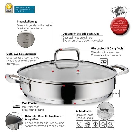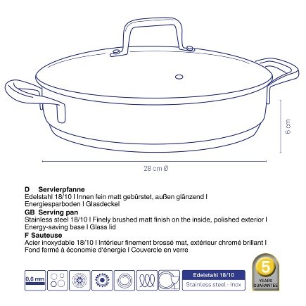 Jedna z najväčších výhod servírovacích panvíc je prenos väčšieho množstva jedla na stôl a následné servírovanie jedla priamo z panvice. Materiál, z ktorého sú servírovacie panvice vyrobené, udržuje jedlo v teple a je tiež odolné pred poškodením. Jedlo budete vždy servírovať teplé. Panvica udrží jedlo v teple po celú dobu stolovania. Panvica sa ľahko čistí a zvyšky jedla pôjdu jednoducho z povrchu odstrániť.