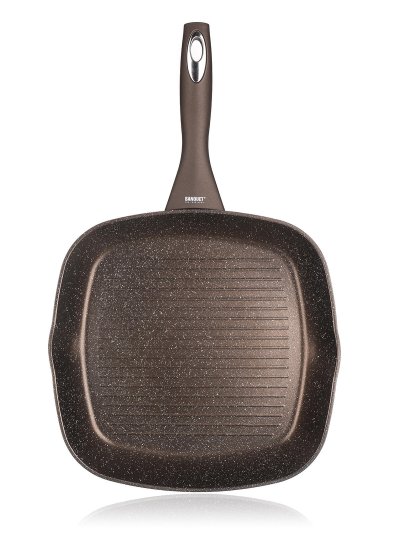 Grilovacia panvica s odolným nepriľnavým povrchom Dyflon. Obojstranný kameninový vzhľad. Vhodná na všetky typy varných dosiek vrátane indukcie.
