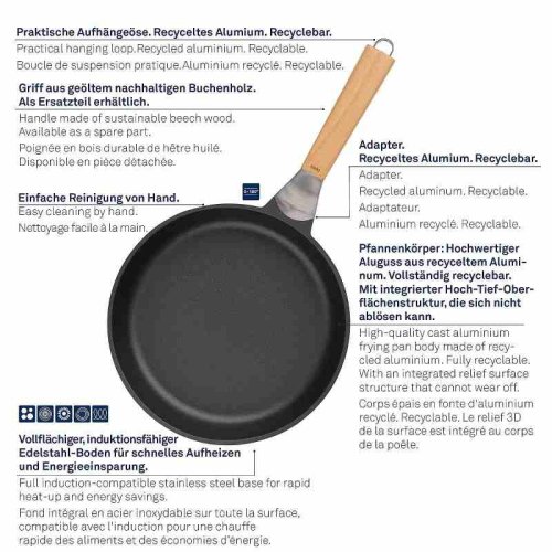 Vitana je robustná. Vitana je inovatívne. Vitana je ECO-friendly. Nová séria panvíc Vitana od nemeckej značky KELA s predĺženou päťročnou zárukou zaručuje dokonalé výsledky pri varení, vyprážaní aj dusení. Robustné panvice majú inovatívny, odolný nepriľnavý povrch, rukoväť z pravého bukového dreva a navyše sú kompletne recyklovateľné. Špeciálne vyvinutý nepriľnavý povrch Vitana© s vlastnosťou Oil Control System. Tento 3-vrstvový nepriľnavý povrch je charakteristický svojou hrubou štruktúrou, vďaka nej sa tuk aj šťavy z pokrmu nerozlievajú iba k okrajom panvice, ale rovnomerne sa distribuujú po celej ploche panvy a zároveň pod pokrm, výsledkom sú tak dokonale šťavnaté a chrumkavé jedlá s výraznou chuťou. Celoplošné dno z ušľachtilej ocele vhodné aj na indukciu pre rýchle ohrievanie a úsporu energie - Vhodná na všetky druhy varných dosiek - Vďaka masívnemu prevedeniu ju môžete bez obáv vložiť do rúry do teploty 180 ° C - Čistenie nepriľnavého povrchu je veľmi jednoduché, umývajte ručne, pretože je rukoväť z pravého bukového dreva, umývačka riadu by mohla znehodnotiť krásnu textúru prírodného drevaAk hľadáte ekologickú panvicu, ktorá vám vydrží dlhé roky, panvice z nového radu VITANA nemeckej značky Kela sú tou pravou voľbou! Panvica, vrátane obalu, je vyrobená z recyklovateľných materiálov, ktoré môžu byť znovu zrecyklované. Všetky diely panvice sa dajú ľahko vymeniť.- materiál: liaty hliník s nepriľnavým povrchom a drevenou rukoväťou- indukcia: ano- elektrika: ano- sklokeramika: ano- plyn: ano- rúra: 180 ° C- priemer: 32 cm- výška: 6 ,5 cm- značka: KELA