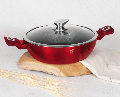 - materiál: kovaný hliník s mramorovým povrchom - farba: červená burgundy, metalická - 2 postanné rukoväte - pokrievka z termoskla - kolekcia riadu Burgundy Edition - priemer: 30 cm - 3 vrstvový nepriľnavý povrch …