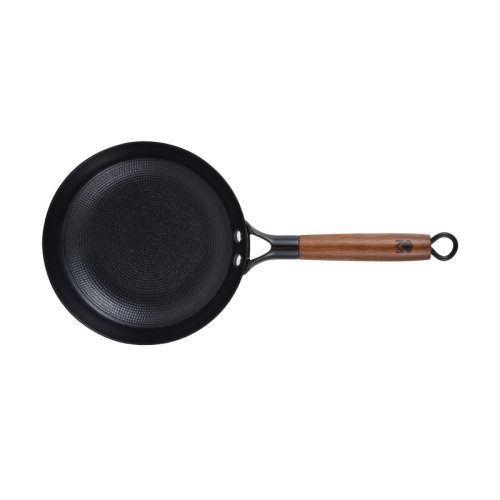 Robustná železná panvica v rustikálnom štýle s drevenou rukoväťou – Panvica ODIN s priemerom 20 cm je ideálnou voľbou pre milovníkov poctivého varenia. Vyniká skvelou tepelnou vodivosťou, prírodnou nepriľnavosťou po vypálení a atraktívnym dizajnom s dlhou rukoväťou z agátového dreva.