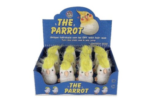 Natiahnite kľúčik umiestnený na papagájovi, po natiahnutí papagáj skáče. Rozmer papagája: 8 x 9 cm Vhodné pre deti od 3 rokov