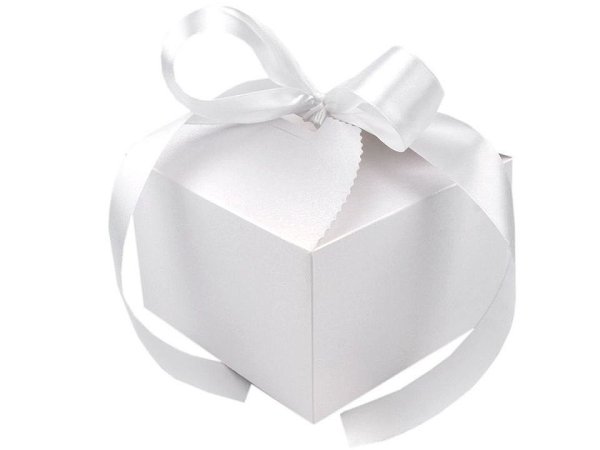 Luxusná papierová krabička je vyrobená z perleťového papiera. Jej povrch zdobí jemný reliéf. V hornej časti sú vyseknuté otvory, ktorými sa prevlečie stuha na zaviazanie. Krabičku využijete na zabalenie menších darčekov alebo na svadobnú výslužku. Krabičku dodávame v rozloženom stave (23,3 x 25 cm). Zložíte si ju jednoducho podľa vyznačených ohýbacích krajov. Súčasťou balenia je saténová stuha. [Krabička je určená pre sekundárny styk s potravinou.]
