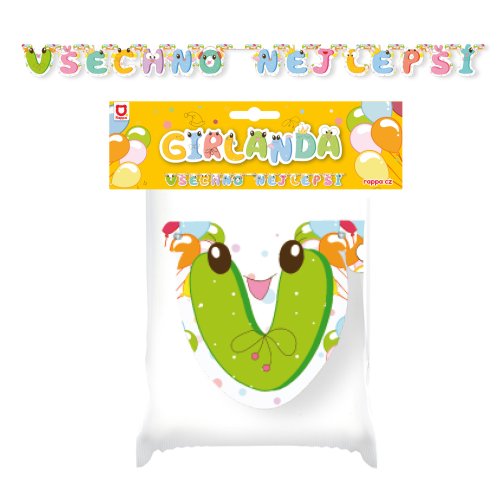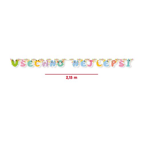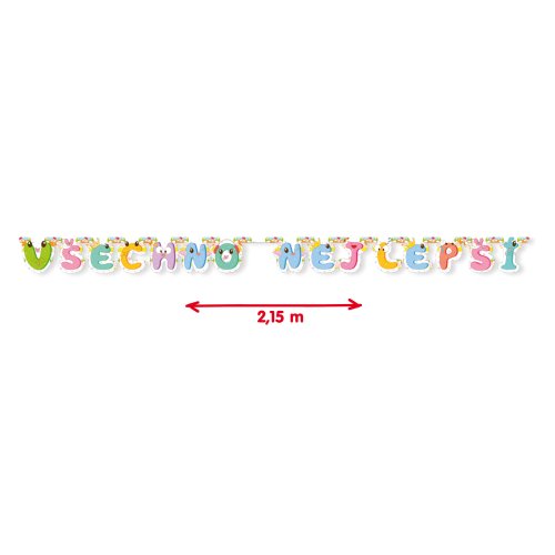 Super tip na oslavu - girlanda Všetko najlepšie! Stačí roztiahnuť a zavesiť. S touto parádnou girlandou bude tvoja výzdoba na párty neprehliadnuteľná. Dĺžka cca 215 cm.