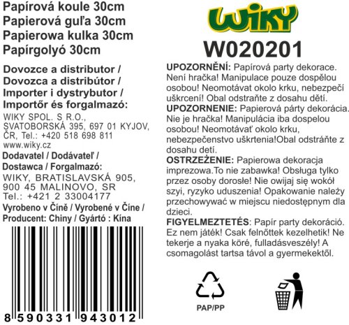 Dekorácia papierová guľa 30 cm na zavesenie so špagátom, biela farba