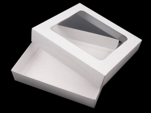 Papierová krabica má výrez vo veku z priehľadnej fólie. Využijete ju na balenie darčekov, šatiek, tričiek, uloženie menších vianočných dekorácií a pod. Môžete si ju aj dozdobiť podľa svojho vkusu. Škatuľu dodávame v rozloženom stave (horné veko - [35 x 37 cm], spodná časť krabice - [40,5 x 42,5 cm]). Zložíte si ju jednoducho podľa vyznačených ohýbacích krajov. Rozmer priehľadu je [15,5 x 17,5 cm].