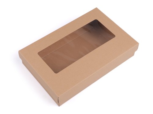 Papierová krabica s obdĺžnikovým výrezom vo veku z priehľadnej fólie. Využijete ju na balenie darčekov, šatiek, rukavíc a pod. Môžete si ju aj dozdobiť podľa svojho vkusu. x 42 cm). Zložíte si ju jednoducho podľa vyznačených ohýbacích krajov. Rozmer priehľadu je 7 x 17 cm.
