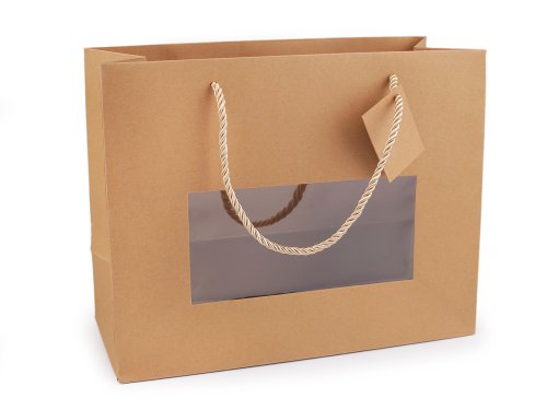 Darčeková taška je vyrobená z kvalitného pevného papiera, z prednej strany ju zdobí plastový priehľad. Uchá sú zo [saténovej šnúry.] Do tašky môžete zabaliť napr. sviečky, kozmetiku či menšie odevy. Tašku tiež môžete podľa svojho vkusu dozdobiť. Rozmery priehľadu sú [8 x 17 cm.]