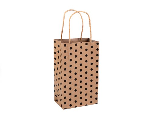Darčeková taška s bodkami je vyrobená z kvalitného pevnejšieho papiera. Uchá sú krútené a tiež vyrobené z papiera. Je vhodná na darovanie darčekov, reklamných predmetov a pod.