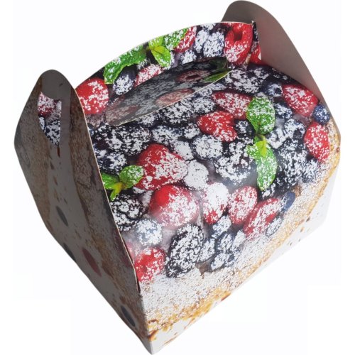Papierová taštička Roma poslúži na nosenie jednohubiek, chlebíčkov i zákuskov bezpečne. Rozmery 18 x 16 cm.