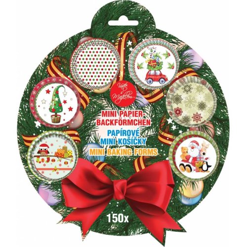 Papierové mini košíčky na pralinky. V balení 150 ks košíčkov s vianočným motívom.