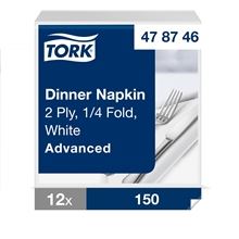 Papierové obrúsky Tork - 12x 150 ks Tork biely obrúsok-večera 2vrstvový Typ skladania 1/4 Farba biela Vyrazila: Áno Rozmer zloženého útržku: š.19,5 x d.19,8 Kvalita: Advanced Kód uvedený na produkte je …