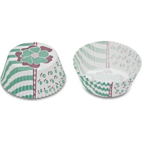 "Papierové formičky na pečenie - košíčky s tyrkysovými kvetmi a pruhmi. Papierové formičky sú vhodné na pečenie muffinov a cupcakes.