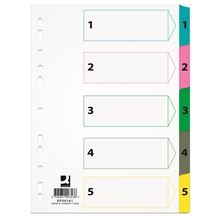 Vyrobené z bieleho kartónu s gramážou 170 g/m2 Farebný index potiahnutý fóliou MYLAR Počet deličov: 5 + 1 Dierovanie: 11 (zosilnené pole perforácie) Index: 1-5 Každá sada je samostatne zabalená do fólie Mix …