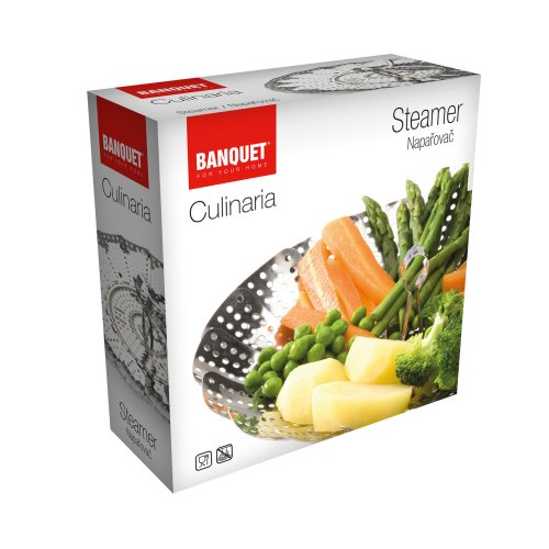 Univerzálny nerezový naparovací vejár určený na naparovanie knedlí, zeleniny a na varenie v pare. Priemer naparovacieho vejára je 23 cm.