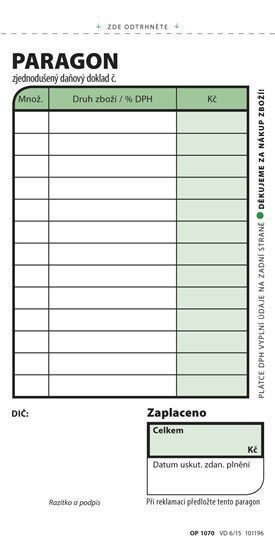 Paragón obchodný, 7,5 × 15 cm, 100 listov