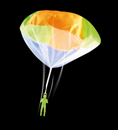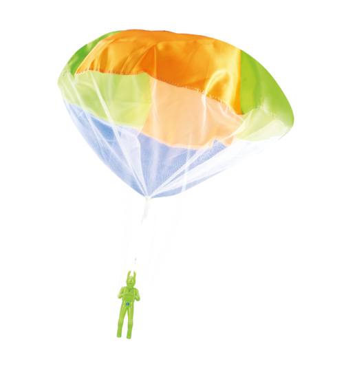 Plastová postavička svietiaceho parašutistu s padákom. Táto hračka určite poteší každého malého dobrodruha. Hračka ideálna na hrátky na záhrade. Behaj a vyhadzuj parašutistu do najväčšej výšky, prekonávaj dĺžku jeho letu! Pri páde sa padák nafúkne a spomalí pád panáčika - ako skutočný parašutista! Batérie 3x AG3 sú súčasťou výrobku. Rozmery balenia 19 x 29 x 4 cm. Vhodné pre deti od 3 rokov.