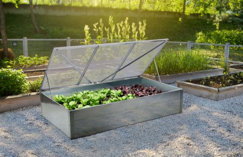 Horný alumíniový rám s výplňou z kvalitného 4mm polykarbonátu vám pri sadbe a starostlivosti o zasadené rastliny umožní pohodlný prístup vďaka variabilnému nastaveniu v požadovanej polohe.