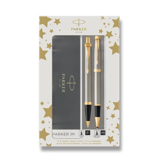 Roller:, * nasadzovacie viečko, * štandardná náplň Quink pre rollery - čierna, Guľôčkové pero (propiská):, * stláčací mechanizmus, * hrot F, * dodávané s modrou náplňou, Vyrobené vo Francúzsku. Dodávané v darčekovej kazete. (Podoba balenia podľa skladovej dostupnosti)., TIP: K rolleru by ste mohli využiť náhradnú náplň Parker F alebo M., TIP: Kúpte si rovno aj náhradnú náplň Parker do guličkového pera., , Parker IM je ideálny partner s neobmedzenými možnosťami. Je elegantný aj vysoko profesionálny a spoľahlivý. Ponúka odolný hrot z ušľachtilej nerezovej ocele, širokú paletu prevedení, inšpirovaných tradíciou značky Parker, užívateľské pohodlie aj maximálnu výkonnosť.