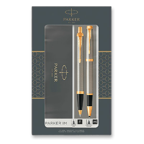 ROLLER:, * nasadzovacie viečko, * štandardná náplň Quink pre rollery - čierna, GULIČKOVÉ PERO (PROPISKA):, * stláčací mechanizmus, * hrot F, * dodávané s čiernou náplňou, Vyrobené vo Francúzsku. Dodávané v darčekovej kazete. (Podoba balenia podľa skladovej dostupnosti)., TIP: K rolleru by ste mohli využiť náhradnú náplň Parker F alebo M., TIP: Kúpte si rovno aj náhradnú náplň Parker do guličkového pera., Parker IM je ideálny partner s neobmedzenými možnosťami. Je elegantný aj vysoko profesionálny a spoľahlivý. Ponúka odolný hrot z ušľachtilej nerezovej ocele, širokú paletu prevedení, inšpirovaných tradíciou značky Parker, užívateľské pohodlie aj maximálnu výkonnosť.