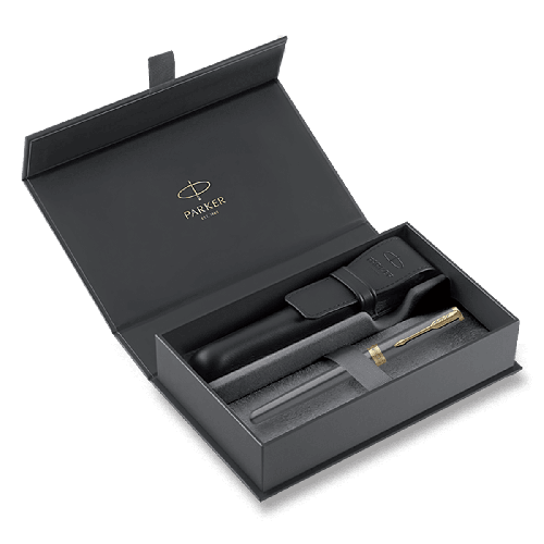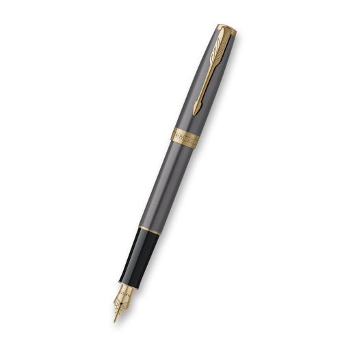 Darčeková kazeta obsahuje:, * plniace pero Parker Sonnet Core Grey GT, * čierne kožené púzdro Parker, * voucher Akadémia písania
