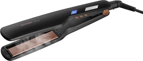 Parná žehlička na vlasy Steam Boost Concept VZ6010 Elite prináša šetrnú starostlivosť pre každý typ vlasov a je vhodná ako pre domáce, tak aj profesionálne používanie. Pomôže vám so žehlením, tvorbou vĺn aj zväčšením objemu účesu. Profesionálna žehlička na každodennú starostlivosť Parná žehlička na vlasy Steam Boost Concept VZ6010 z radu Elite je vhodná na každodennú starostlivosť o vlasy nielen doma, ale aj v kaderníckych salónoch. Je vybavená vysoko šetrnou a účinnou parnou technológiou a nadštandardnou dĺžkou kábla 2,5 m. Para je šetrná k vašim vlasom Hlavnou výhodou parnej žehličky na vlasy VZ6010 je jej vysoko šetrná starostlivosť k vlasov m. Parná technológia poskytuje hĺbkovú hydratáciu vlasov, ochranu pred vysokými teplotami a dokáže zaceliť rozstrapkané končeky. Počas chvíľky získate dokonale hladké a prirodzene lesklé vlasy. Parná žehlička VZ6010 narovná všetky typy vlasov, vrátane hustých a kučeravých. Zaoblené okraje žehličky umožňujú rýchlu tvorbu vĺn Vďaka zaobleným okrajom žehličky môžete vlasy nielen žehliť, ale aj natáčať alebo zväčšiť objem vášho účesu. To všetko veľmi ľahko a rýchlo jedným ťahom. Plávajúce žehliace dosky sa prispôsobia každému prameňu Parná žehlička Steam Boost VZ6010 je osadená plávajúcimi žehliacimi doskami, ktoré sú veľmi šetrné k vašim vlasom. Počas žehlenia sa prispôsobí hrúbke každého prameňa, takže je dosiahnutý optimálny a rovnomerný tlak a nedochádza k poškodeniu a lámaniu vlasov. Žehlička je vybavená systémom rýchleho nahriatia a vďaka keramickému povrchu žehliacich plôch sa teplo rovnomerne rozkladá po celej ploche. Výsledkom sú dokonale rovné a lesklé vlasy. Vhodná pre každý typ vlasov Žehlička ponúka výber z 5 teplotných stupňov, takže je vhodná ako pre jemné vlasy, tak aj pre silné a kučeravé. Aktuálne nastavenú teplotu môžete sledovať na prehľadnom LED displeji. Pre zvýšenie bezpečnosti je opatrená funkciou automatického vypnutia po 60 minútach nečinnosti. Súčasťou žehličky je aj ochranné cestovné puzdro a zámok na uzamknutie žehliacich plôch, ktorý chráni povrch dosiek pred poškriabaním.