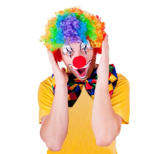 Farebná karnevalová parochňa v štýle klauna je určená pre dospelých. S touto bláznivou parochňou si určite užijete veľa zábavy.