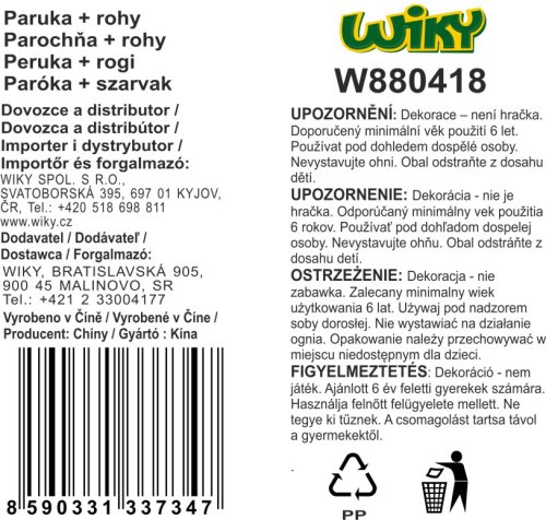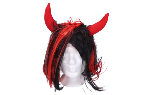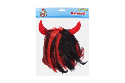 Parochňu pre čerta tvoria čierne vlasy s červenými prameňmi as červenými textilnými rohmi.