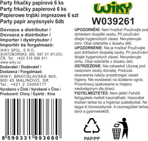 Papierové párty frkačky s konfetami. Balenie obsahuje 6 ks.