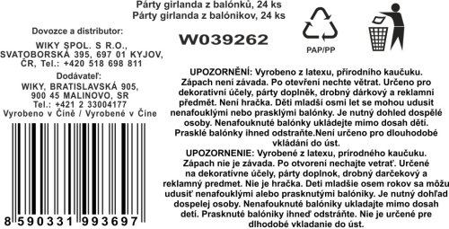 Párty girlanda z balónikov Balenie obsahuje: 24 ks balónikov, ktoré je možné k sebe pripojiť a vytvoriť tak girlandu