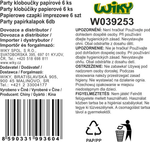 Papierové párty klobúčiky PASTEL o veľkosti 15 cm. Balenie obsahuje 6 ks.