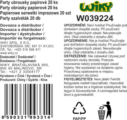 Papierové párty obrúsky HRA o veľkosti 33x33 cm. Balenie obsahuje 20 ks.