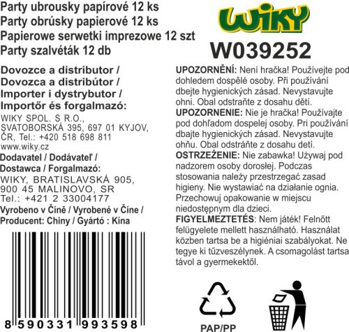 Papierové párty obrúsky PASTEL o veľkosti 33x33 cm. Balenie obsahuje 12 ks.