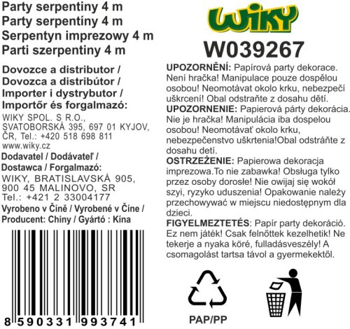 Papierové párty serpentíny BALÓNKY s dĺžkou 4 m.