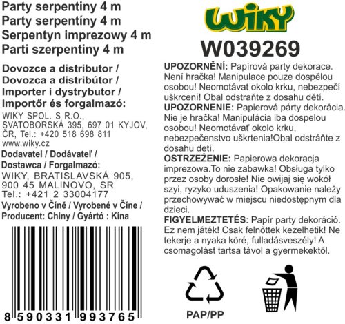 Papierové párty serpentíny PRUHY s dĺžkou 4 m.