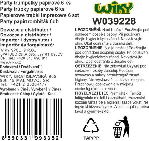 Párty trúbky HRA 20 cm. Balenie obsahuje 6 ks trúbitiek.