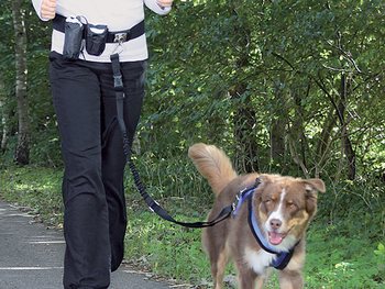 vodítko je možné pripevniť priamo k bedrovému pásu, takže máte pri behu obe ruky voľné