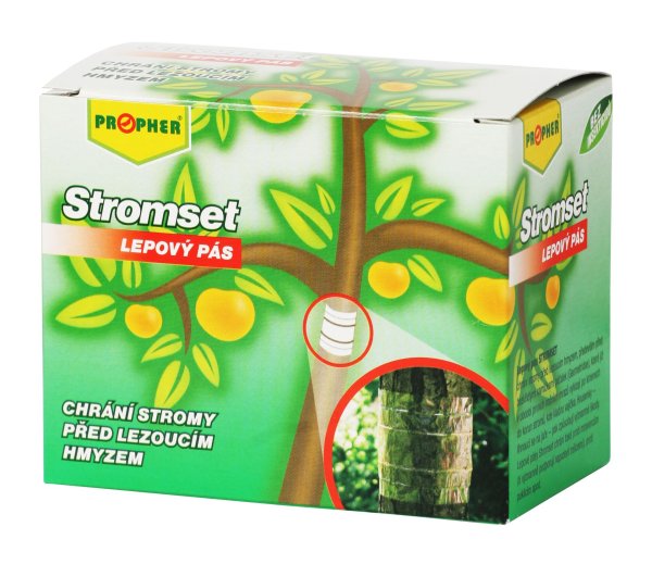 Lepové pásy Stromset chráni stomy pred lezúcim hmyzom. Upevňujú sa na stromy už pred prvými nočnými mrazmi (cca v polovici októbra). Kôru stromu vo výške 60 až 80 cm nad zemou uhladíme opatrne špachtľou, aby lepový pás priľnul čo najtesnejšie. Odmeriame zodpovedajúcu dĺžku pásu podľa obvodu kmeňa, pridáme 3 cm na preloženie a odstrihneme. Odstrihnutý kus pásu rozložíme, obtočíme okolo kmeňa (lepovou vrstvou zvonku) a na okrajoch nad a pod lepenkou zaistíme dvoma priloženými kúskami lepiacej pásky.