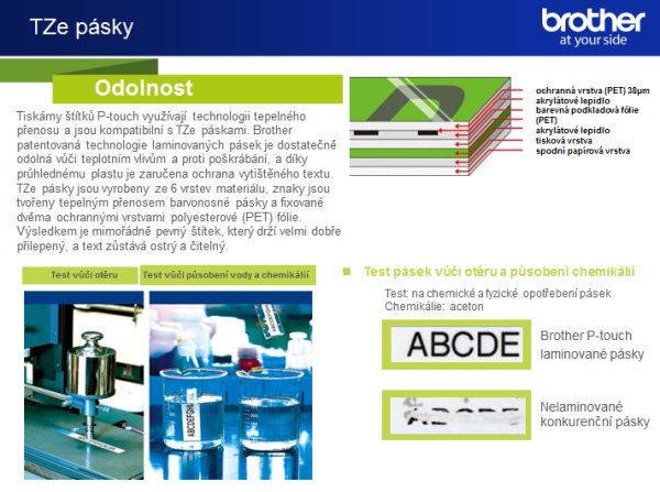 Brother patentovaná technológia laminovaných pások je dostatočne