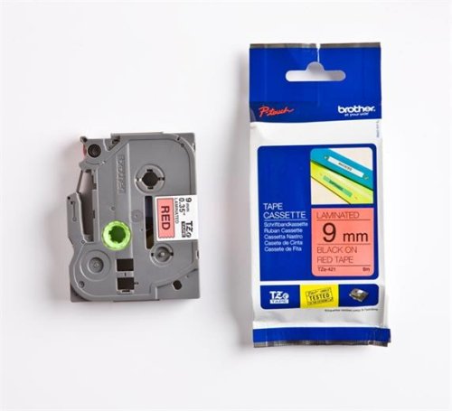 Štandardná TZ/TZE-421 páska , 9 mm x 8 m, farba červená/čierna, laminovaná, je určená do všetkých typov tlačiarní štítkov Brother. Využíva sa na výrobu šablón elektrochemického značenia. TZE pásky nahrádzajú modely pások TZ. Jedná sa o ekologickú verziu pások TZ.