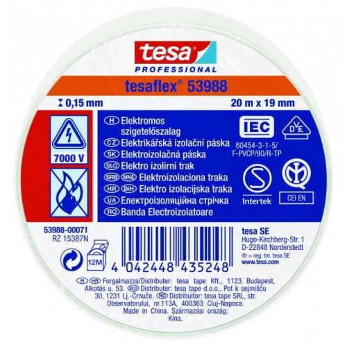 Páska elektroizolačná PVC 53947, IEC, 20 mx 19 mm, biela, TESA